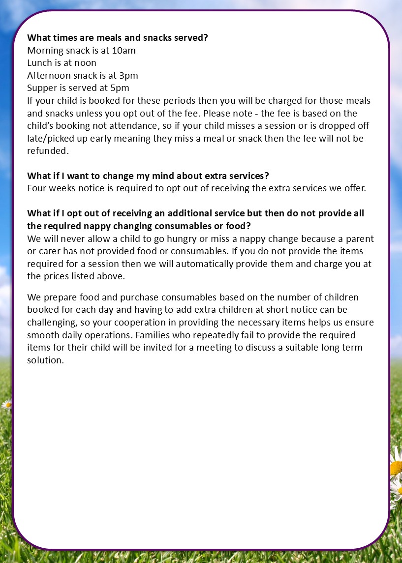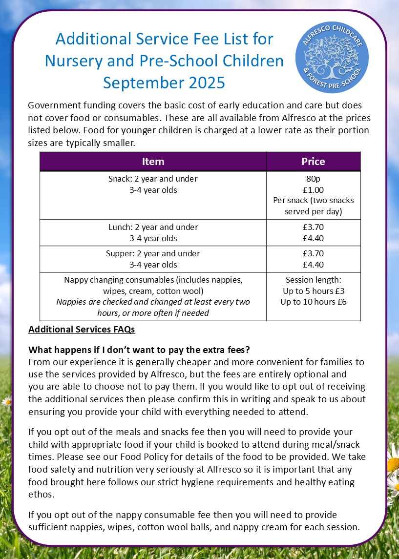 Here are details of the additional services we offer at Alfresco which arent covered by government funding